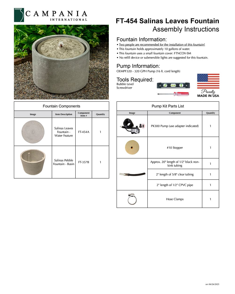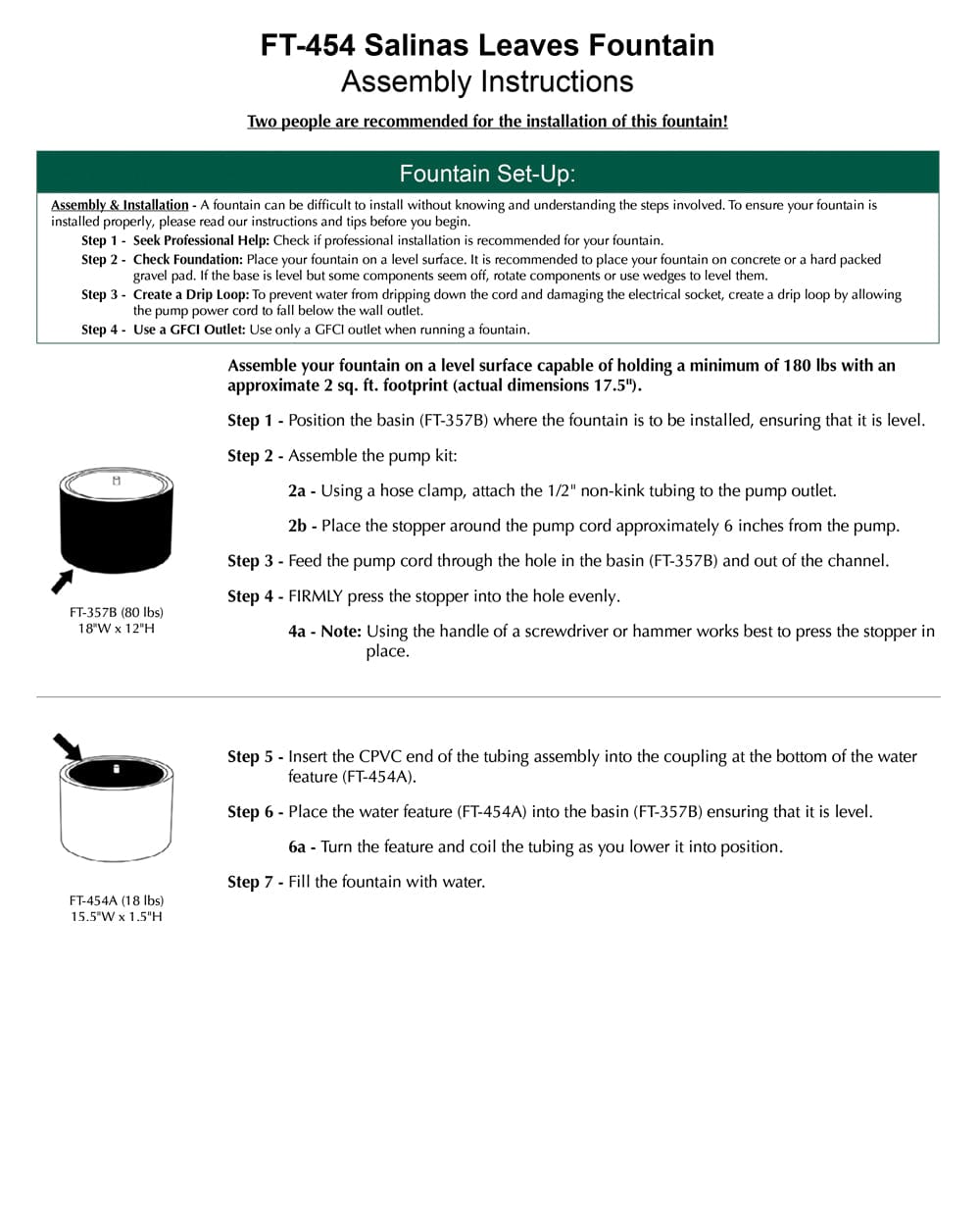- All hardware and tubing required to properly assemble the fountain