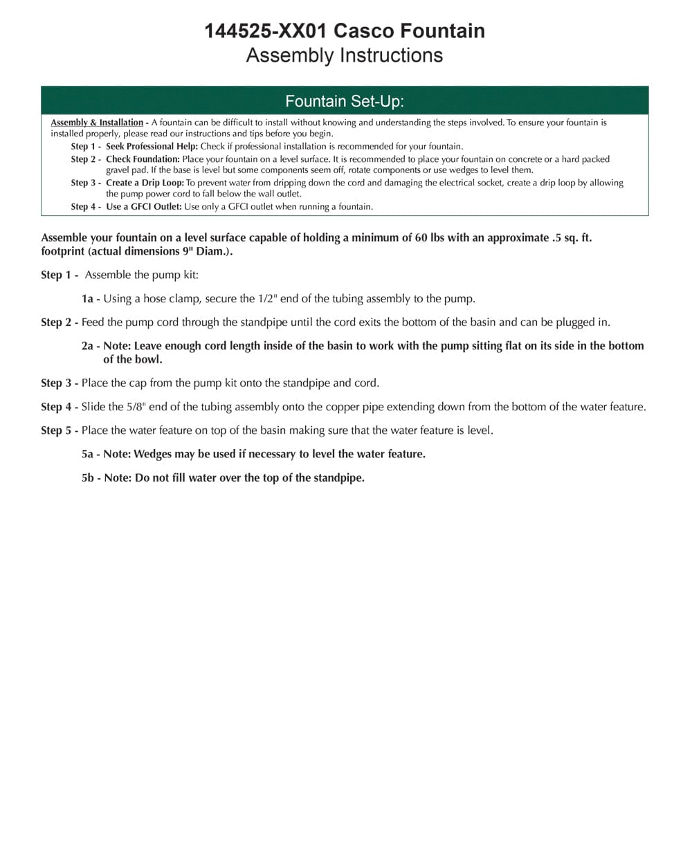 We suggest that birdbath/fountain tops not be left outside in the winter. Once the top fills with water/snow and freezes, the top may crack. All birdbath/fountain bases, bench legs and statuary should be raised up off the ground in winter so they will not freeze to the ground surface. Ideally, a fountain should be stored indoors in the winter away from the elements. However, if a fountain bowl must be left outside, remove all pumps, rubber stoppers, drain pipes, finials and small components, and cover the top with burlap or any absorbent material (old blanket/towel) and then wrapped with dark plastic, making sure that water does not accumulate in the basin and freeze. Fountain pumps, finials, and other small components should be stored indoors. Check the fountain periodically to insure that the cover is secure and water is not accumulating in any fountain component.