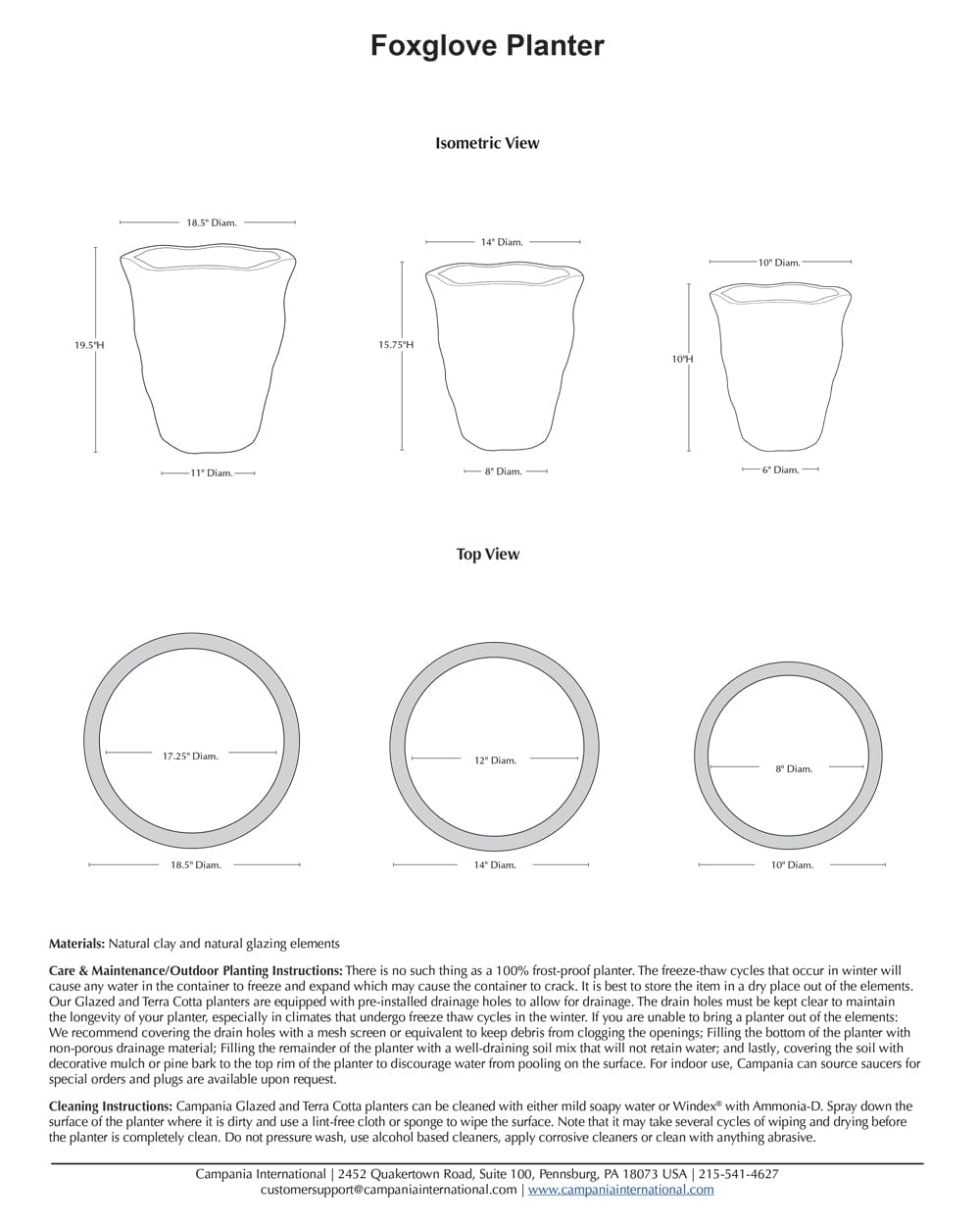 Campania’s glazed and terra cotta planters are hand made from natural clay using traditional artisanal techniques and high-fired at temperatures between 990-1000 degrees centigrade to ensure frost resistance and durability.