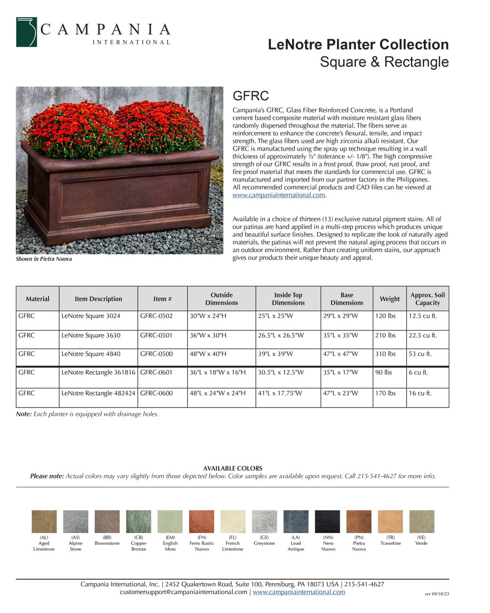- Made of Glass Fiber Reinforced Concrete (GFRC) that mimics the look and feel of cast stone but is significantly lighter