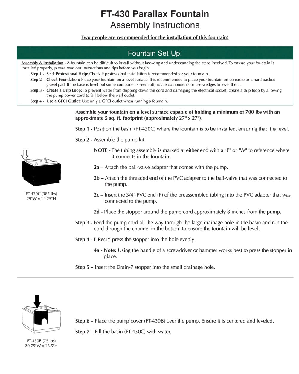 4) On the delivery for fountains with extra large bases, a forklift is required for delivery as the base will be too big for lift-gate service. You must arrange this prior to fountain delivery. NOTE: Although most fountains DO NOT require a forklift because they can fit on a lift gate, we will notify you prior to shipping if your fountain requires a fork lift.