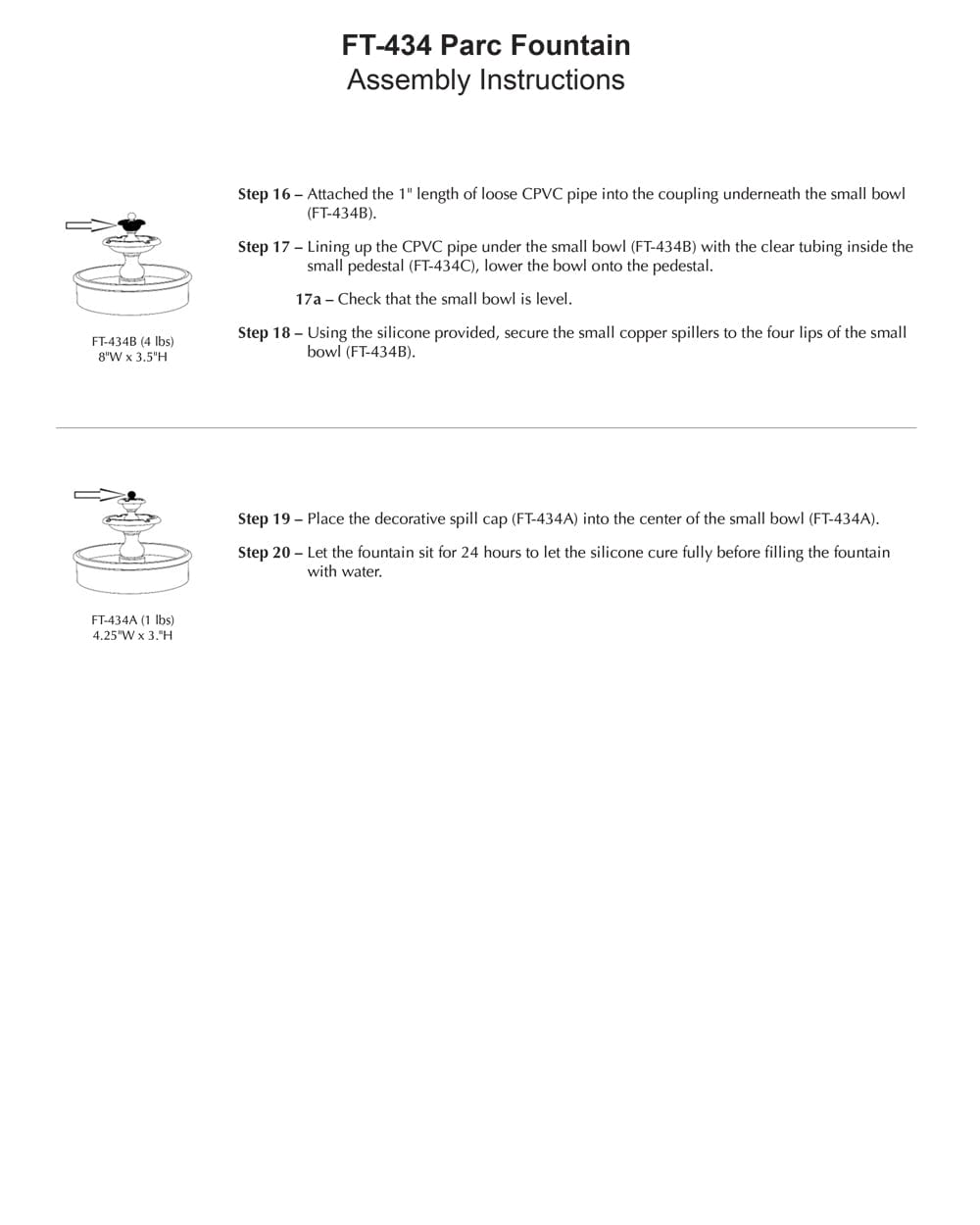 We suggest that birdbath/fountain tops not be left outside in the winter. Once the top fills with water/snow and freezes, the top may crack. All birdbath/fountain bases, bench legs and statuary should be raised up off the ground in winter so they will not freeze to the ground surface. Ideally, a fountain should be stored indoors in the winter away from the elements. However, if a fountain bowl must be left outside, remove all pumps, rubber stoppers, drain pipes, finials and small components, and cover the top with burlap or any absorbent material (old blanket/towel) and then wrapped with dark plastic, making sure that water does not accumulate in the basin and freeze. Fountain pumps, finials, and other small components should be stored indoors. Check the fountain periodically to insure that the cover is secure and water is not accumulating in any fountain component.