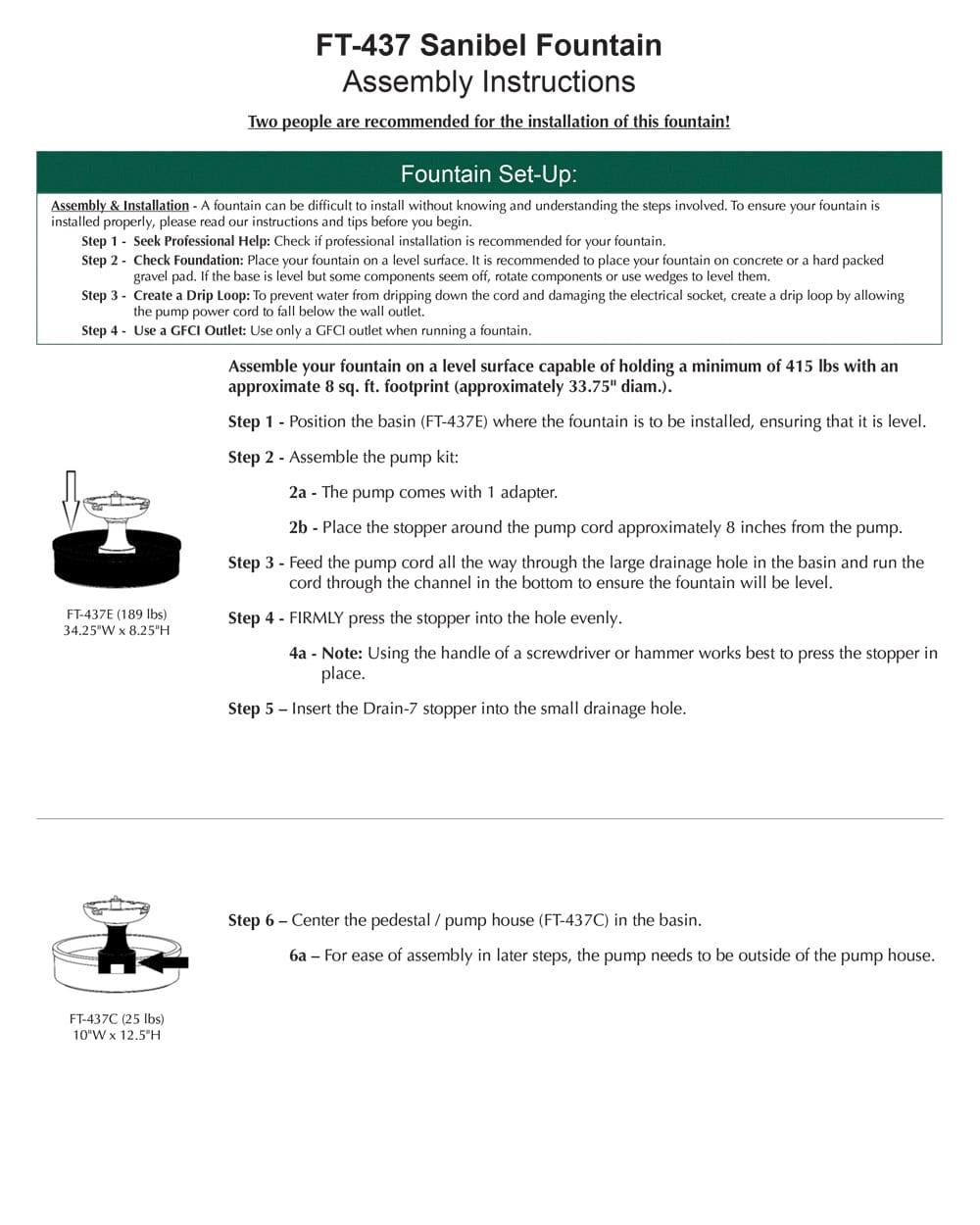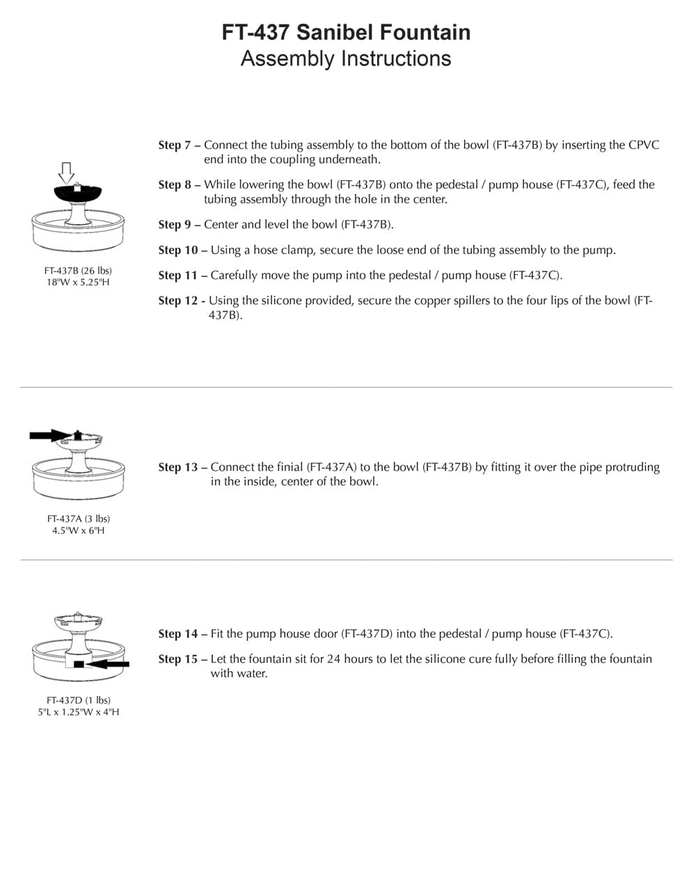 We suggest that birdbath/fountain tops not be left outside in the winter. Once the top fills with water/snow and freezes, the top may crack. All birdbath/fountain bases, bench legs and statuary should be raised up off the ground in winter so they will not freeze to the ground surface. Ideally, a fountain should be stored indoors in the winter away from the elements. However, if a fountain bowl must be left outside, remove all pumps, rubber stoppers, drain pipes, finials and small components, and cover the top with burlap or any absorbent material (old blanket/towel) and then wrapped with dark plastic, making sure that water does not accumulate in the basin and freeze. Fountain pumps, finials, and other small components should be stored indoors. Check the fountain periodically to insure that the cover is secure and water is not accumulating in any fountain component.