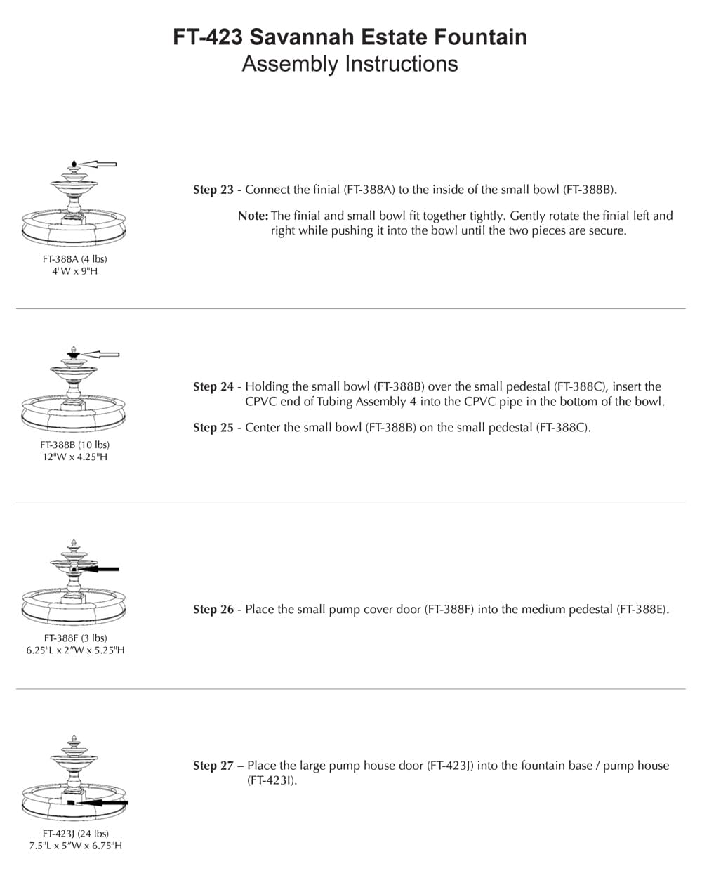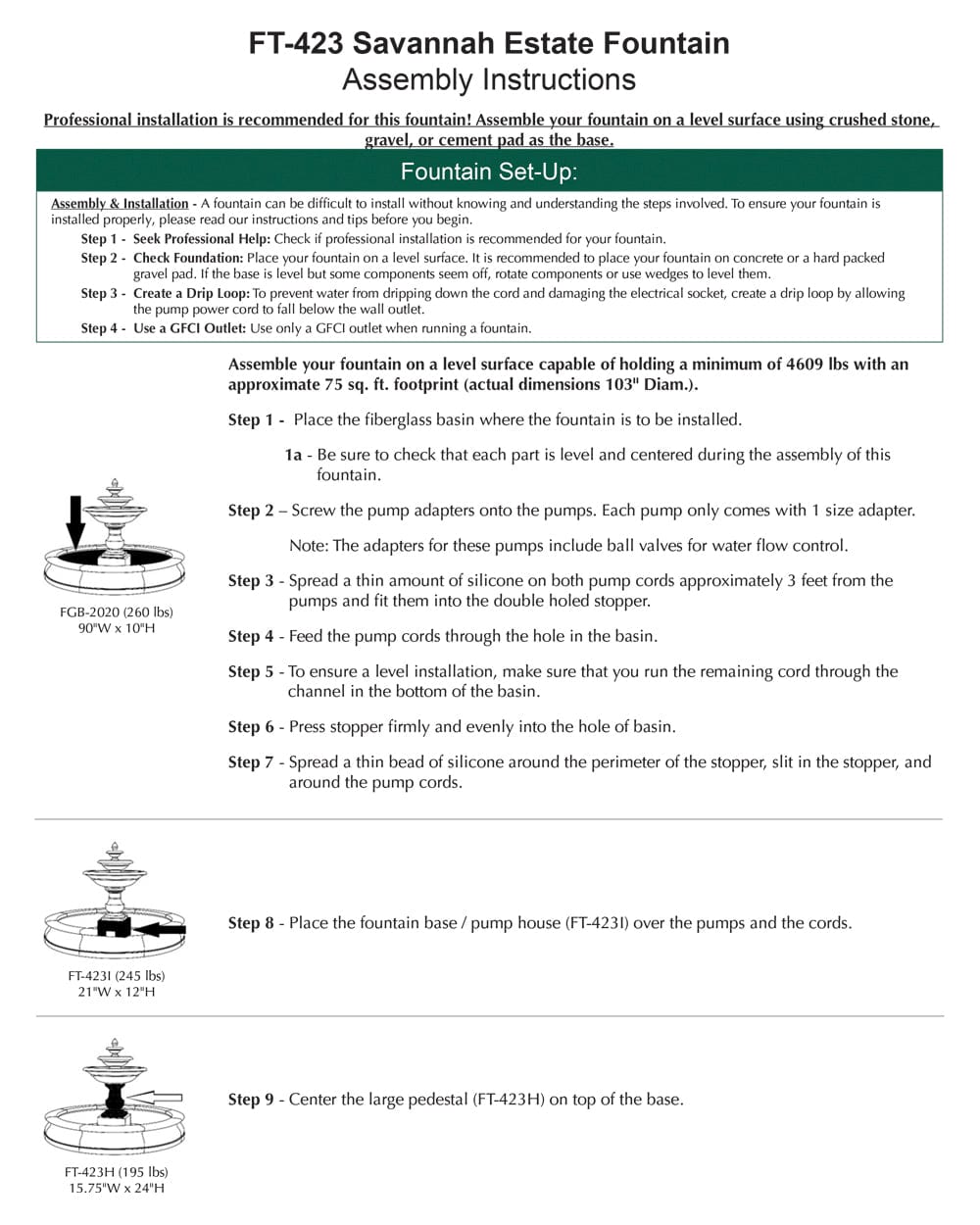 4) On the delivery for fountains with extra large bases, a forklift is required for delivery as the base will be too big for lift-gate service. You must arrange this prior to fountain delivery. NOTE: Although most fountains DO NOT require a forklift because they can fit on a lift gate, we will notify you prior to shipping if your fountain requires a fork lift.