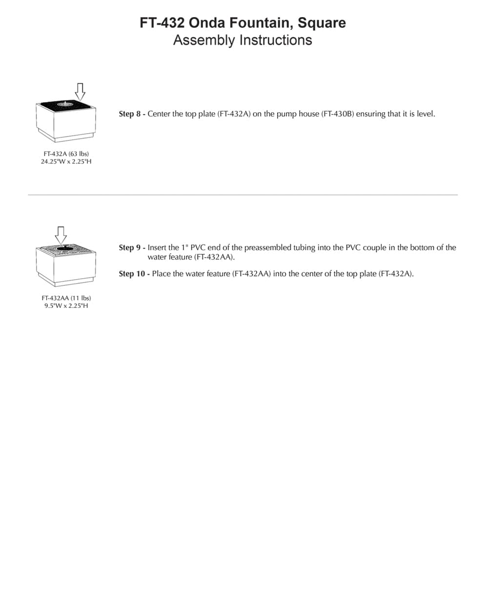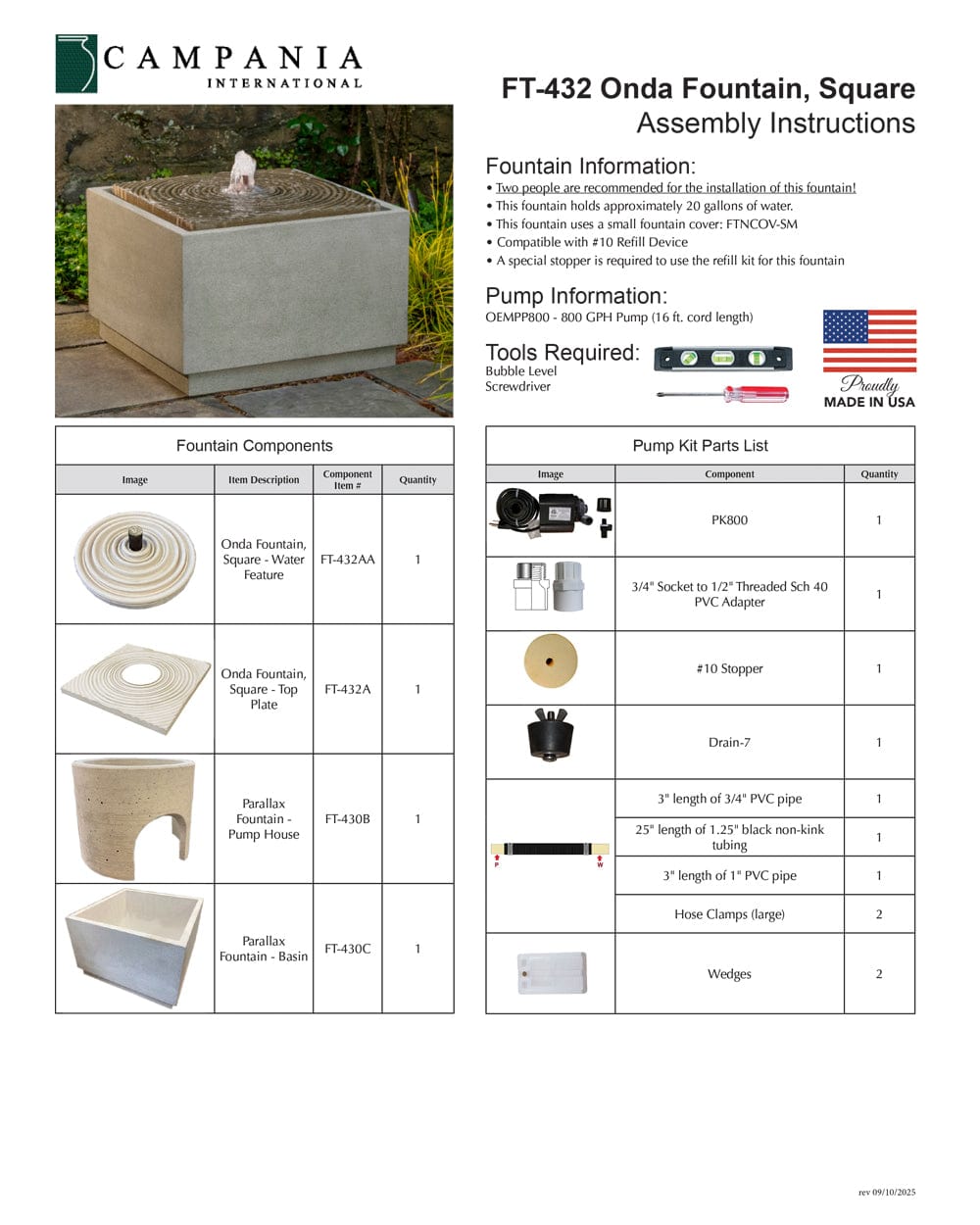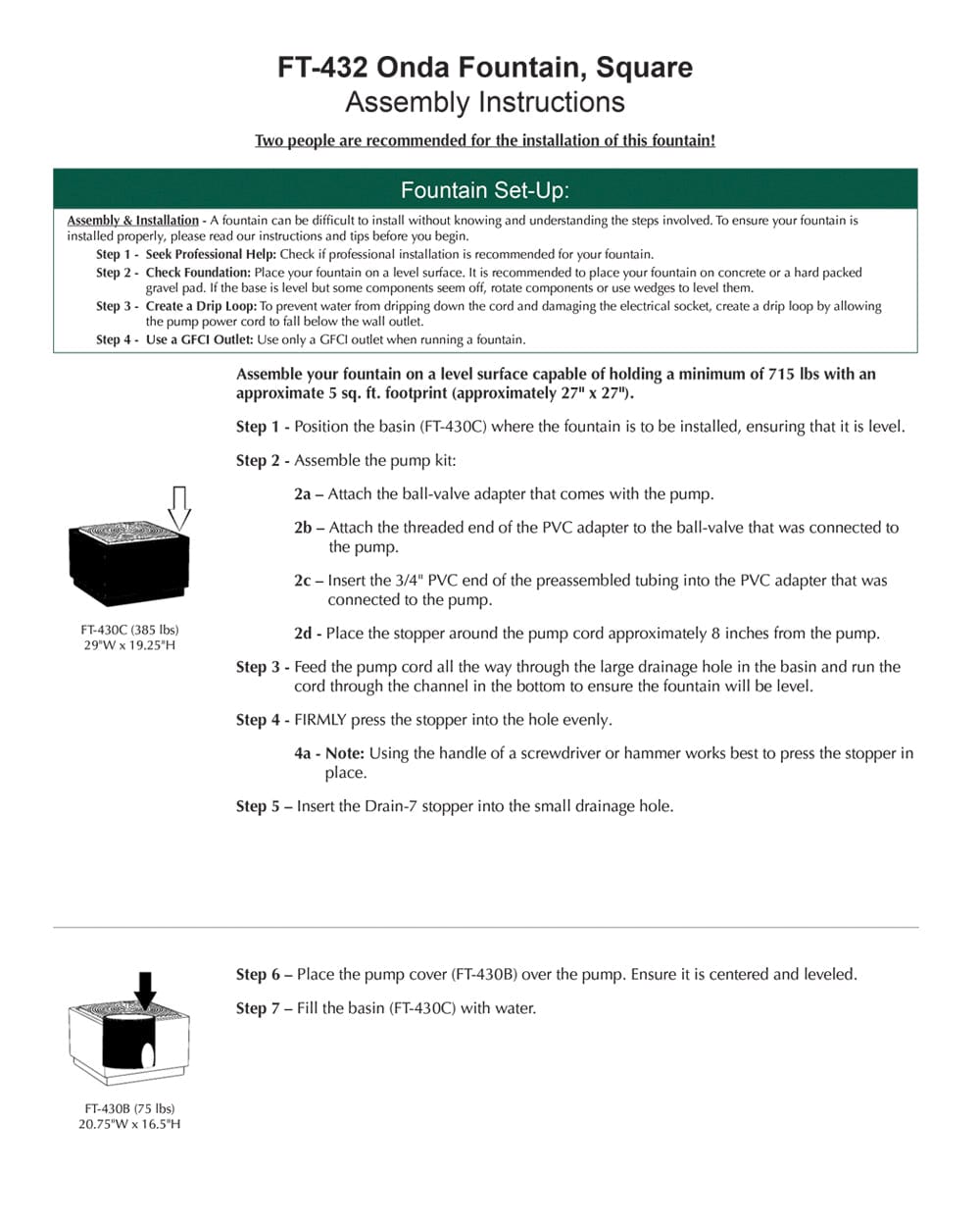 - All hardware and tubing required to properly assemble the fountain
