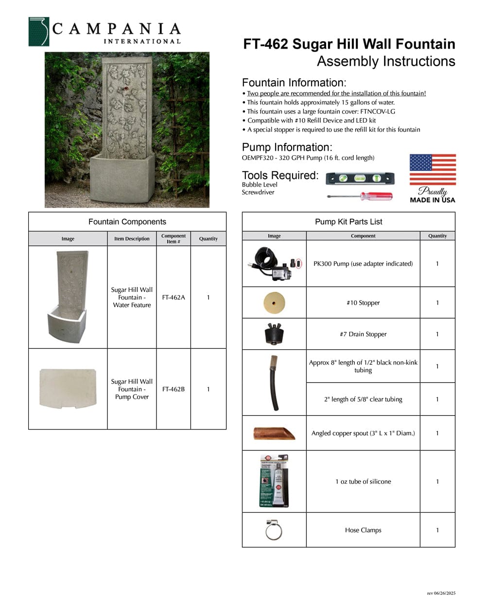 To keep a constant water level in your fountain, you can add the auto refill system. It comes with a float valve, concrete base, custom stopper, clear tubing, and a pressure relief garden hose or spigot connection. The device is connected to a garden hose or spigot, and the water is turned on and off by the valve in the unit, keeping your fountain filled effortlessly.