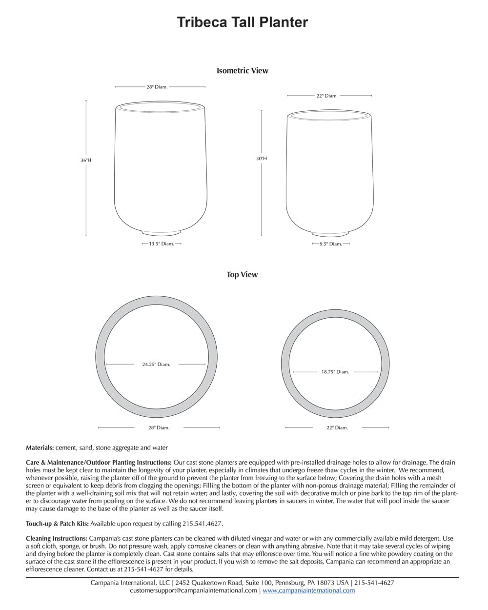 Tribeca Tall Planter Specifications: