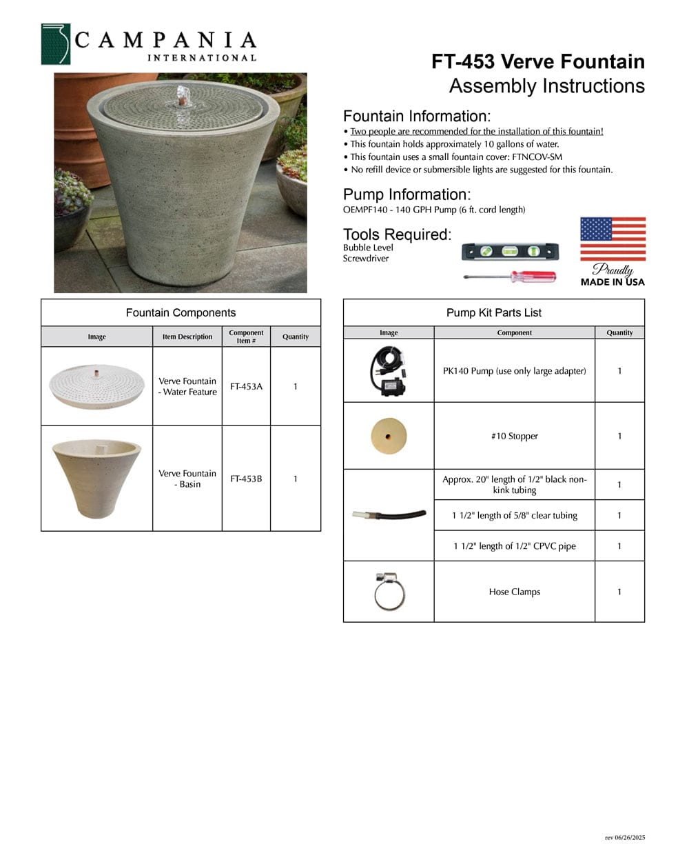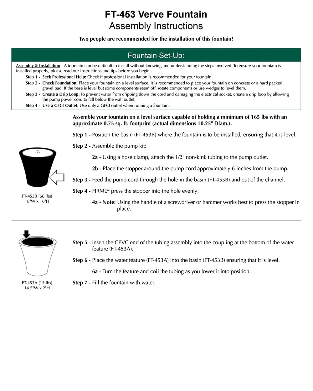 - All hardware and tubing required to properly assemble the fountain